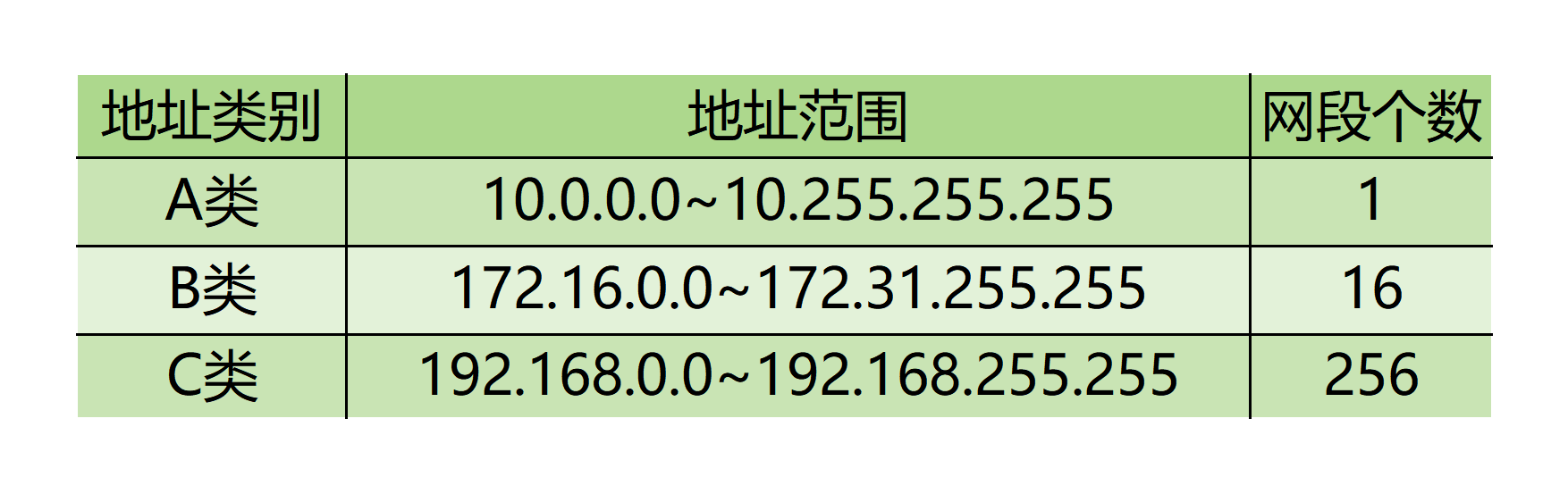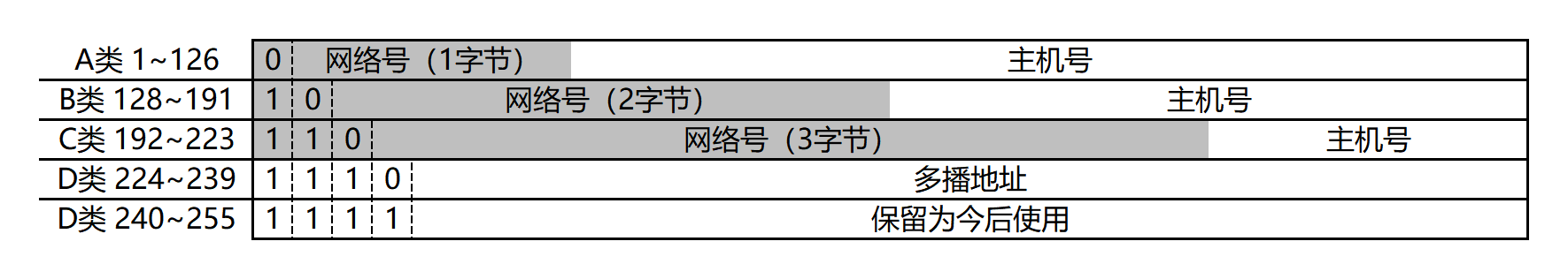 💡点分十进制:把一字节的二进制数转为十进制,并用“.”分隔,IP地址转换为“x.x.x.x”