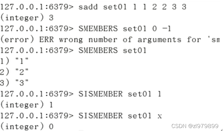 - 判断集合<key>是否为含有该<value>值,有1,没有0