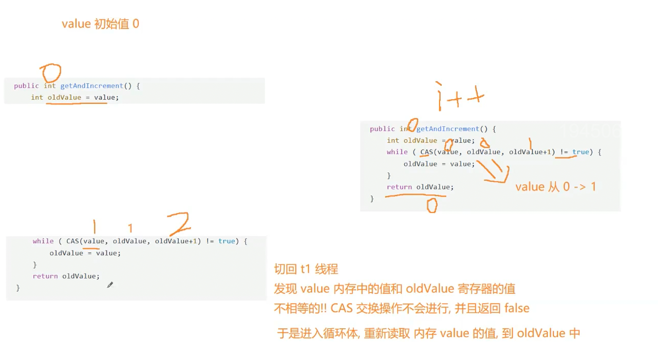 核心功能是:比较内存中的值是否等于预期值 如果是 则修改为新值 否则不做任何操作