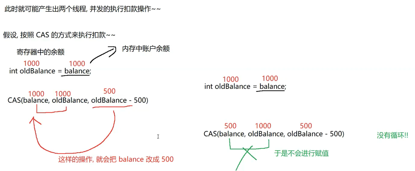 CAS的一个典型缺陷: 使用CAS能够进行线程安全的编程 核心就是先比较“相等”(内存和寄存器是否相等)(这里本质上是在判定是否有其他线程插入进来了做了一些修改如果发现这里寄存器和内存的值一致,就可以认为没有线程穿插过来修改 因此接下来的修改操作就是线程安全的) 但是如果原来是A 中途有线程A-B-A(翻新机)呢另一个线程把内存A修改成B 又从B修改回A呢)
