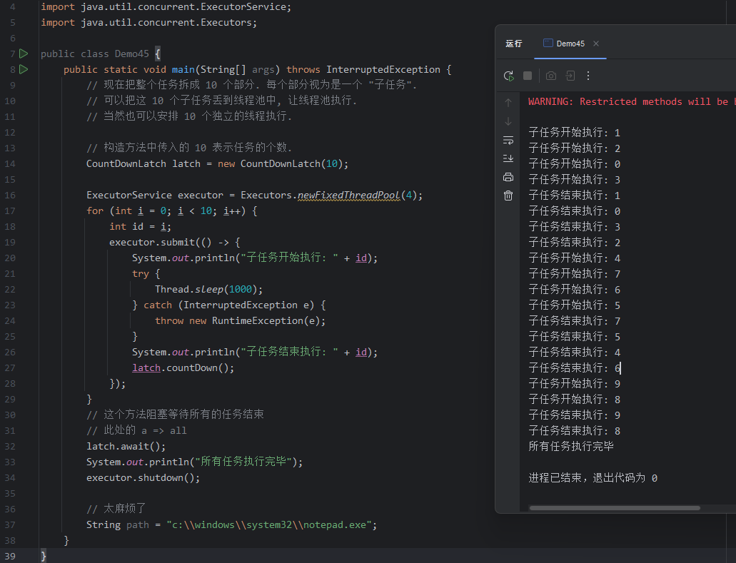 使用多线程 经常把一个大的任务拆分成多个子任务