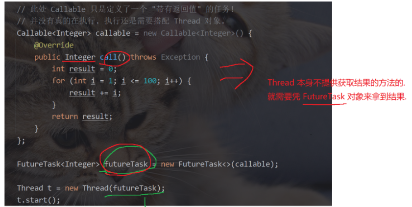 这个futureTask相当于去饭店吃饭的时候领的一个号码牌 凭号码牌取餐