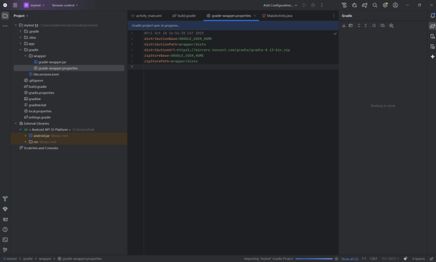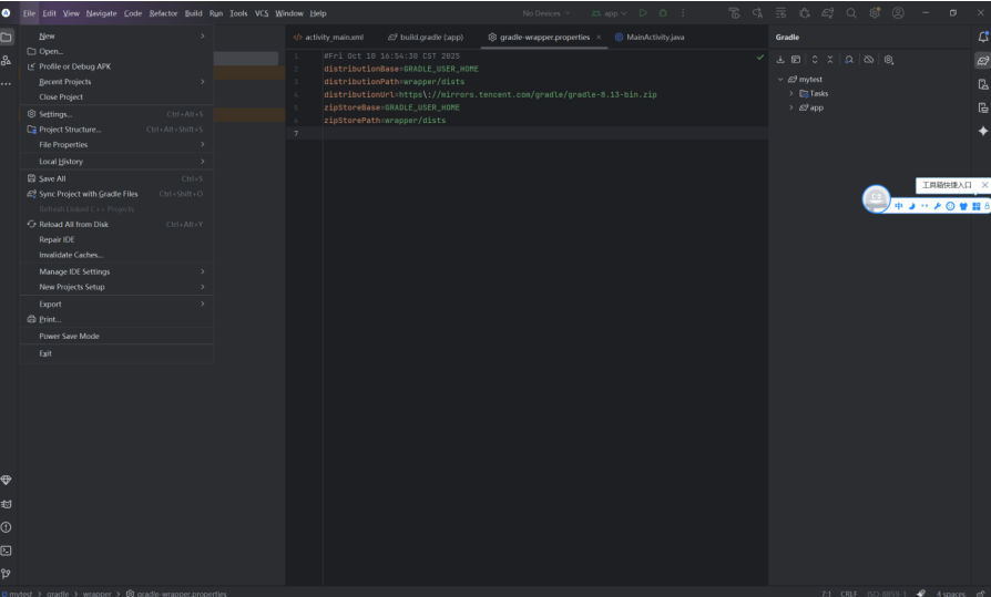 进入工程,加载时间较长,把gradle改为腾讯的网址:mirrors.tencent.com/gradle 进行加速。