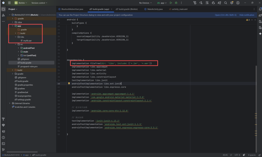 在app文件夹下添加libs文件夹,添加.aar文件。