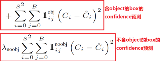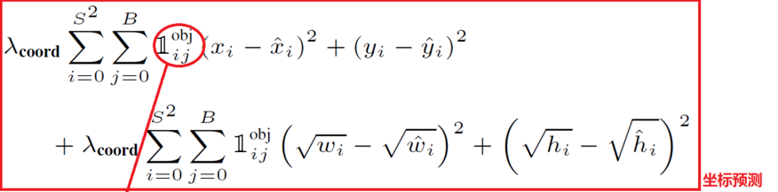 这里第一个求和符号后面的小符号,表示第i个网格是否包含物体,如果包含,那么其值为1,否则为0