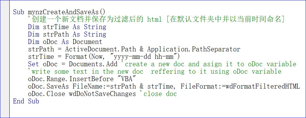 VBA即用型代码手册:创建一个新文档并保存html文件