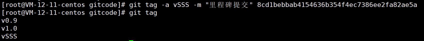 然后,敲一下命令 git tag [name] 就可以打印一个新标签: