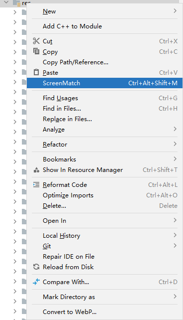 修改好后,再次右键->ScreenMatch 重新生成其他尺寸资源文件夹。