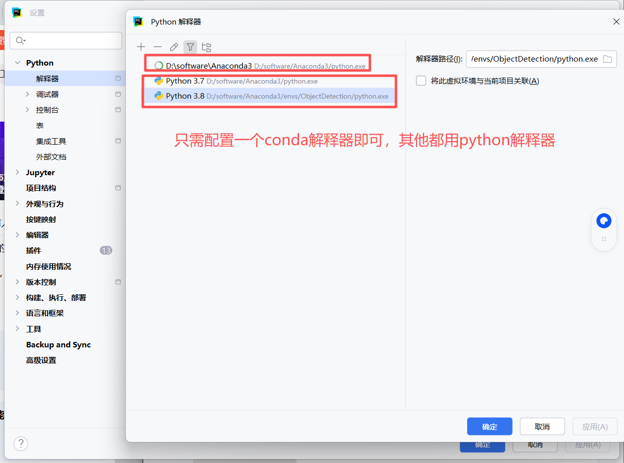 可以配置多个:每个环境的python.exe
