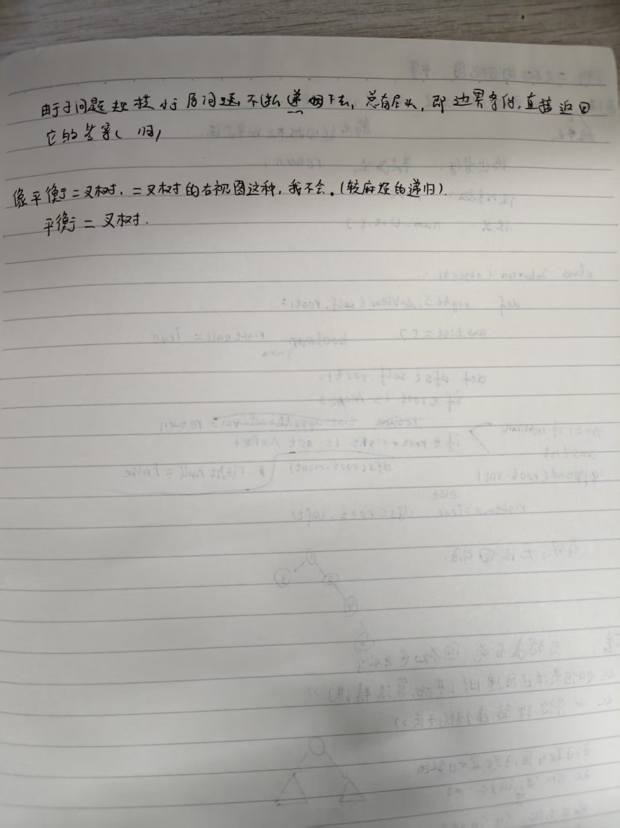 class Solution(object):def isBalanced(self, root):""":type root: Optional[TreeNode]:rtype: bool"""#记录高度并返回,用于“递”的计算。返回的高度是正数。那如果当前节点不是平衡二叉树,返回一个负数作为标记(-1)。def dfs(root):if root is None:return 0leftH = dfs(root.left)if leftH == -1 :return -1#难点在这:应该在获取到rightH时候去计算高度差来判断平衡二叉树rightH = dfs(root.right)if rightH == -1 or abs(rightH-leftH) > 1 :return -1return max(leftH,rightH)+1return dfs(root) != -1