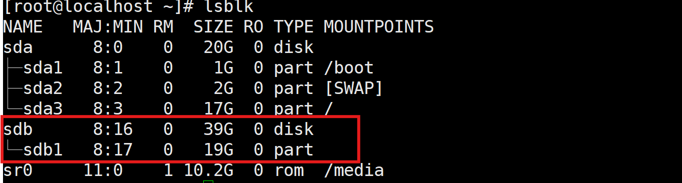 sdb 8:16 0 39G 0 disk