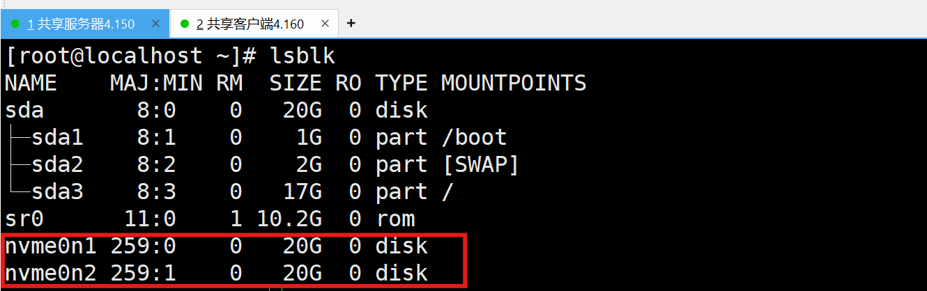 准备两台虚拟机,一台做服务器(4.150),一台做客户端(4.160)