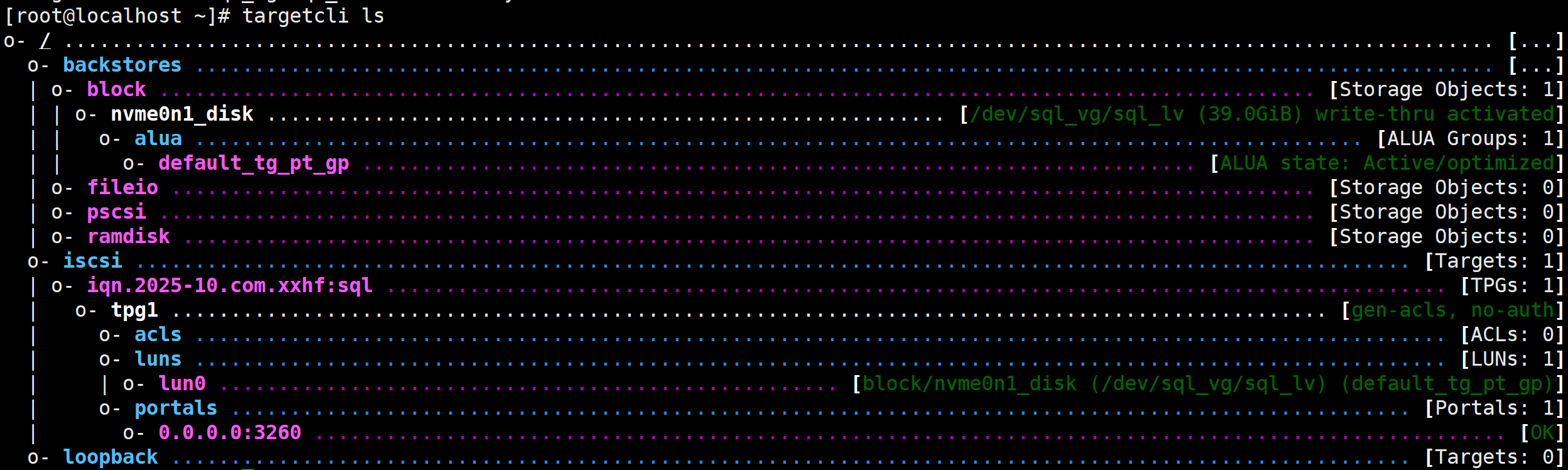 /> /iscsi/iqn.2025-10.com.xxhf:sql/tpg1/luns create /backstores/block/nvme0n1_disk