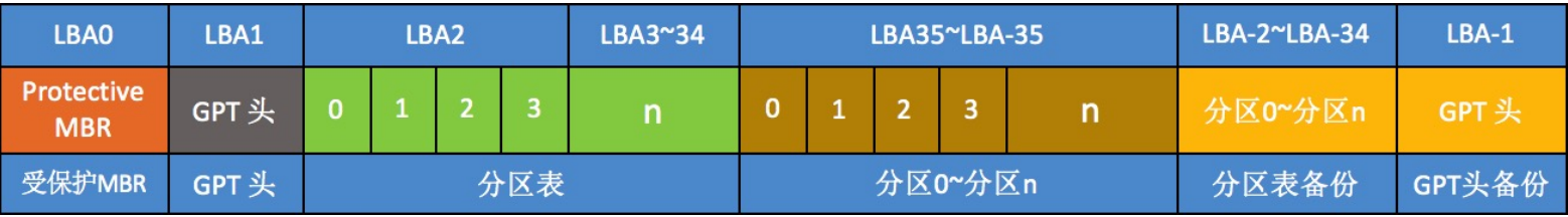 GPT的起始扇区和结束扇区能够使用8个字节表示00 00 00 00 00 00 00 00 – FF FF FF FF FF FF FF FF,支持的最多的扇区数量是2^64个,那么GPT所支持的最大磁盘大小为:2^64 x 512 ≈ 9.44ZB ≈ 8ZiB