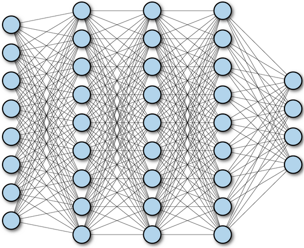 全连接神经网络(Fully Connected Neural Network),中每个节点与下一层所有节点相连,通过调整节点连接关系处理信息,工程和学术界常简称其为 “神经网络”,如下图所示: