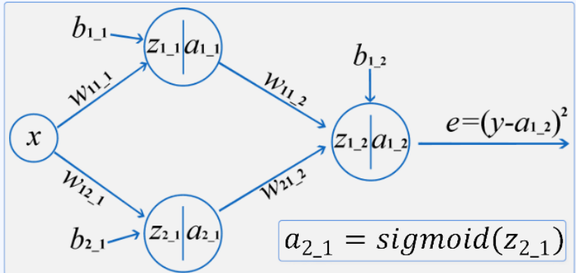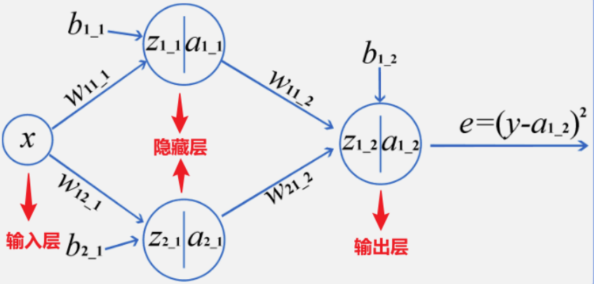 def sigmoid(x): # 修正函数名拼写错误return 1 / (1 + np.exp(-x))def forward(w11_1, b1_1, w12_1, b2_1, w11_2, w21_2, b1_2, x):# 第一层第一个神经元的计算z1_1 = w11_1 * x + b1_1a1_1 = sigmoid(z1_1)# 第一层第二个神经元计算z2_1 = w12_1 * x + b2_1a2_1 = sigmoid(z2_1)# 第二层(输出层)的计算z1_2 = a1_1 * w11_2 + a2_1 * w21_2 + b1_2a1_2 = sigmoid(z1_2)return a1_1, a2_1, a1_2"""