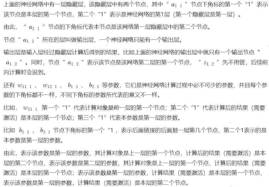节点"a1_1"和节点"a2_1"所在的层叫做隐藏层,一个神经网络可以有很多个隐藏层,每一个隐藏层中也可以有很多个节点。