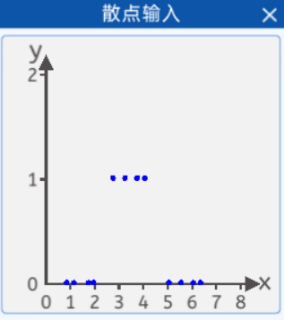 其坐标分别为:[0.8, 0],[1.1, 0],[1.7, 0],[1.9, 0],[2.7, 1],[3.2, 1],[3.7, 1],[4.0, 1],[5.0, 0],[5.5, 0],[6.0, 0],[6.3, 0],纵坐标1代表能穿上,0代表穿不上。
