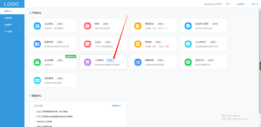 - 进入乔拓云网,注册登录账号后进入后台,点击【门店系统】,进入其后台管理页面。