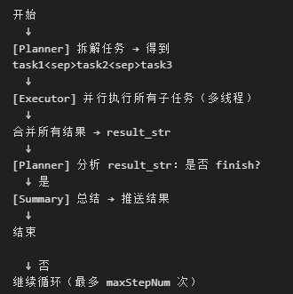- 调用planning生成任务列表,完成所有子任务就能完成任务。