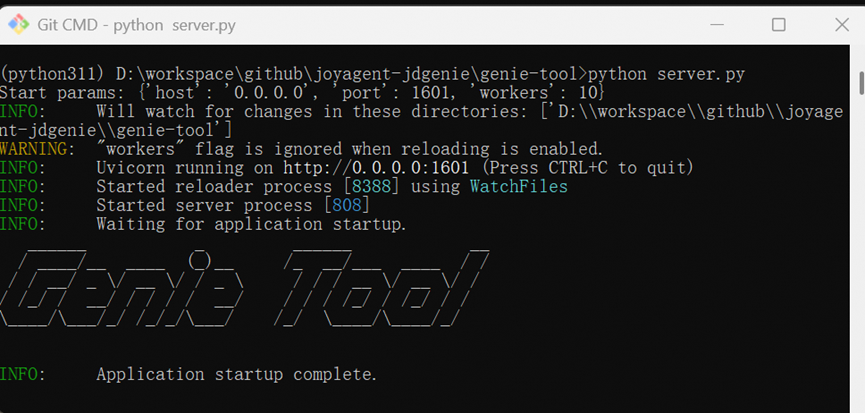 在python311环境下,首次启动需要执行 python -m genie_tool.db.db_engine 之后则无需执行。