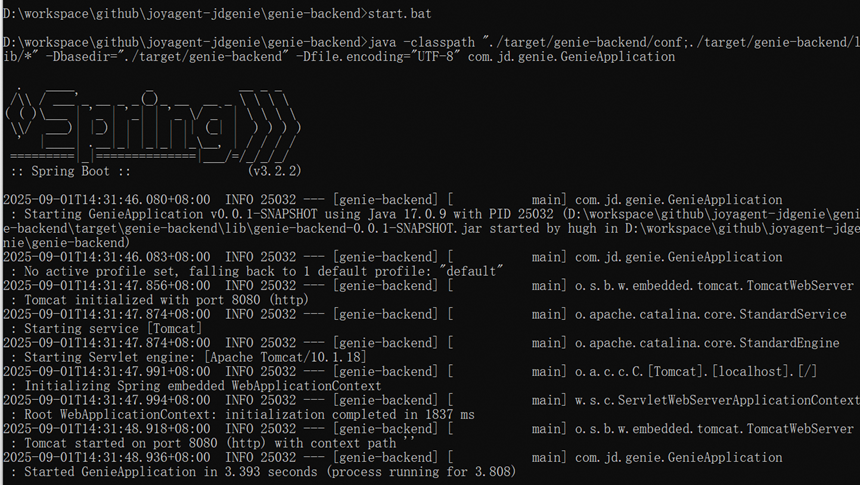 java -classpath "./target/genie-backend/conf;./target/genie-backend/lib/*" -Dbasedir="./target/genie-backend" -Dfile.encoding="UTF-8" -Dsun.jnu.encoding=UTF-8 com.jd.genie.GenieApplication