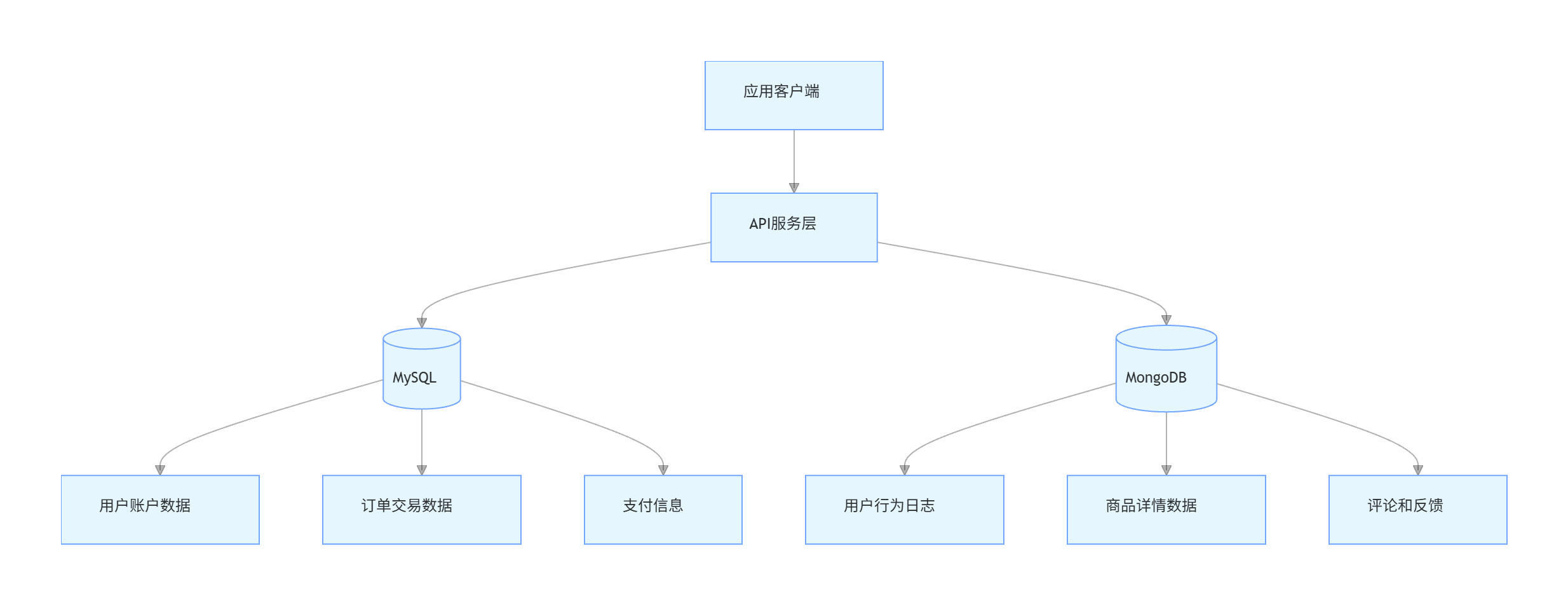 - 商品详情、用户行为日志、评论等非结构化或半结构化数据存储在 MongoDB 中,提高灵活性和写入性能