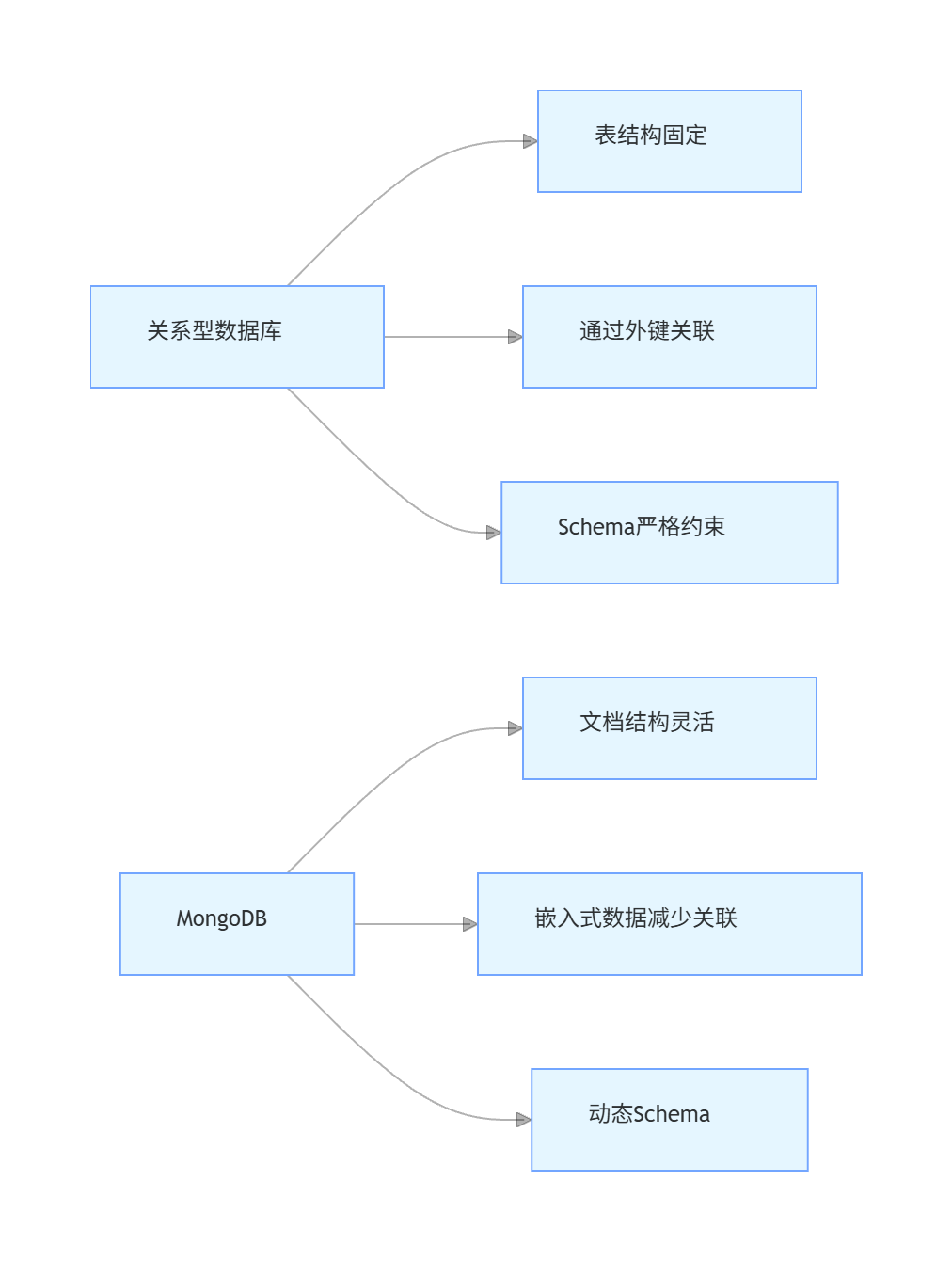 Schema | 固定,预先定义 | 动态,灵活 |