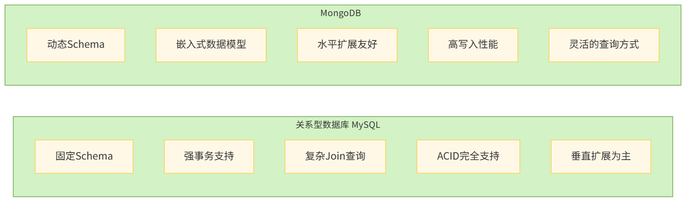 适用场景 | 结构化数据,复杂事务,多表关联 | 非结构化 / 半结构化数据,快速迭代,高写入场景 |