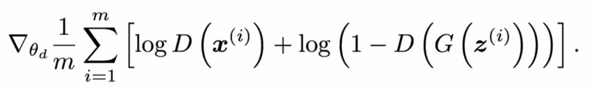 在每一步里采样m个噪音样本和m个真实样本,组成一个2m大小的小批量,放进价值函数里面求梯度来更新辨别器: