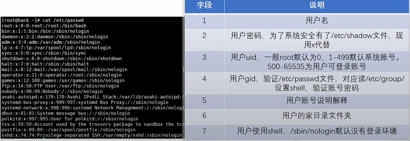 cat/etc/passwd 查看系统用户信息