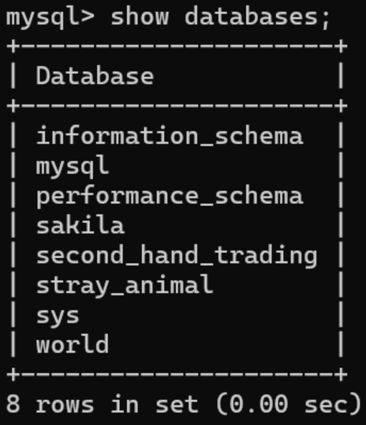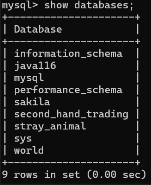 删除数据库之后,使⽤show databases; 语句查看不到对应的数据库