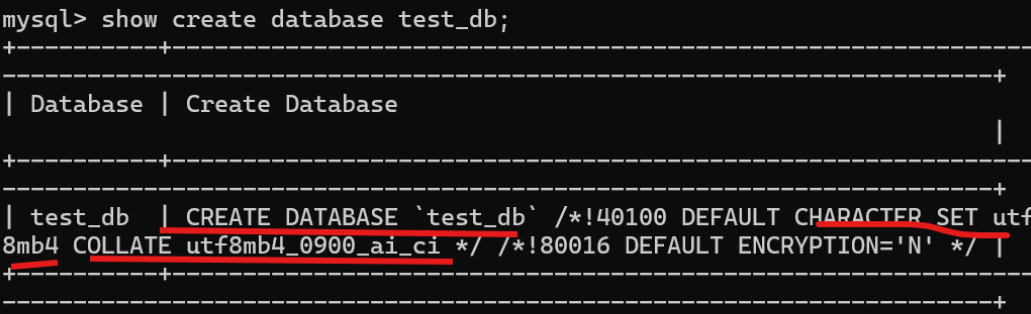 创建⼀个库名为test_db,字符编码集为 utf8mb4 ,排序规则为 utf8mb4_0900_ai_ci 的数据