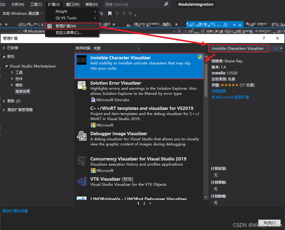 显示零宽空格0x200B并且删除该字符则很简单,在Vs中我们可以通过下载Invisible Character Visualizer插件对项目中的零宽空格0x200B进行显示。