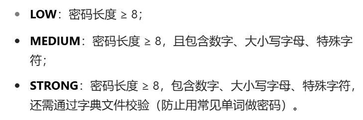 设置密码的时候,因为我们前面设置了 MySQL 的安全设置,所以密码强度必须要符合要求