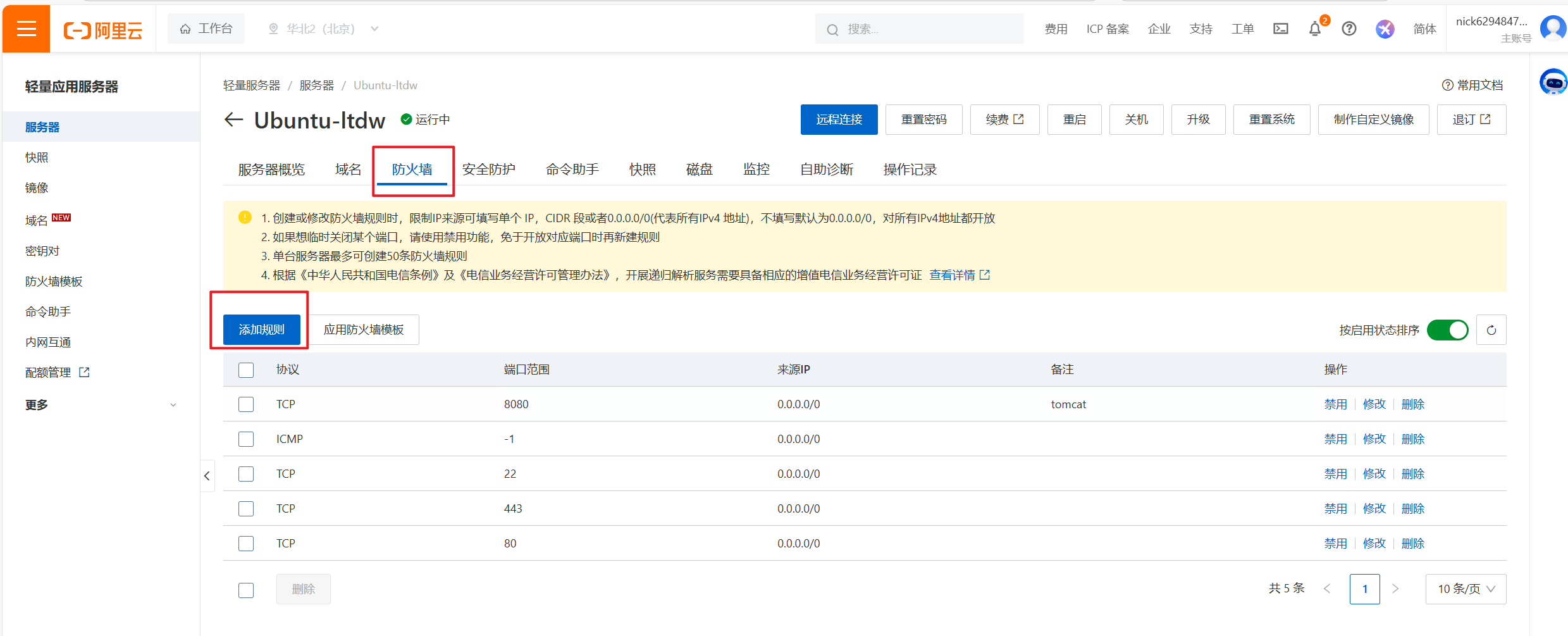 以阿里云服务器举例:
