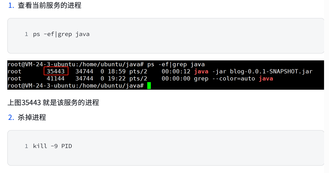 如果我们需要重启服务,或者重新部署等,都需要先停止之前的服务