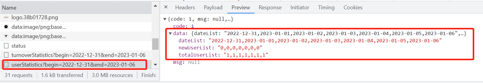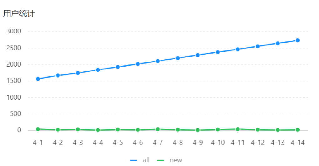 根据时间选择区间,展示每天的用户总量和新增用户量数据