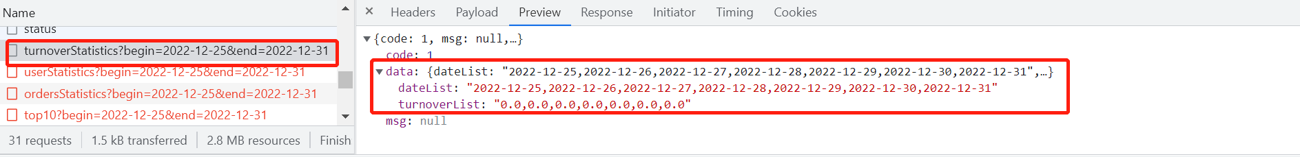 注意:具体返回数据一般由前端来决定,前端展示图表,具体折线图对应数据是什么格式,是有固定的要求的。 所以说,后端需要去适应前端,它需要什么格式的数据,我们就给它返回什么格式的数据。