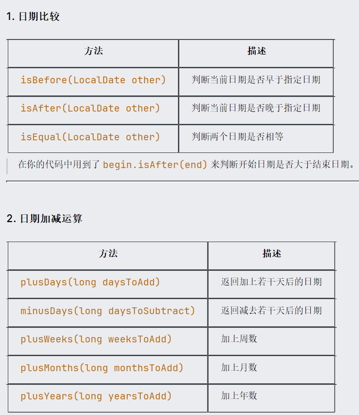 因为 begin 是 LocalDate 类的一个实例,而 LocalDate 类提供了很多实用的方法来操作和获取日期信息。这些方法使得对日期的操作变得非常方便和安全。