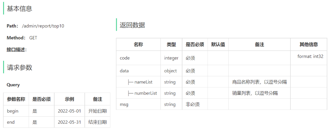 /*** 销量top10* @param begin* @param end* @return*/SalesTop10ReportVO top10(LocalDate begin, LocalDate end);