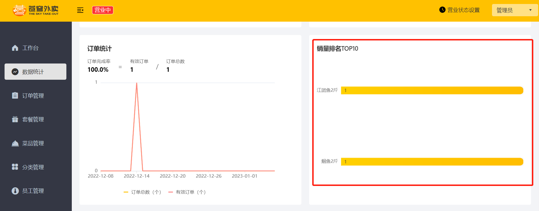 根据时间选择区间,展示销量前10的商品(包括菜品和套餐)
