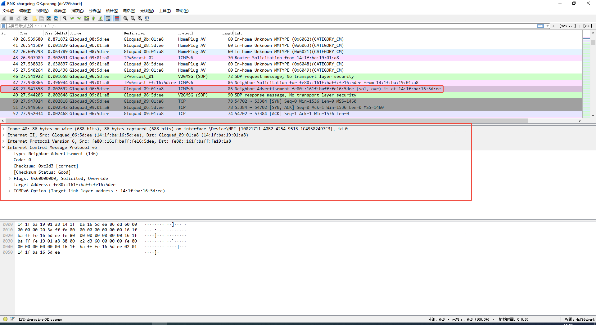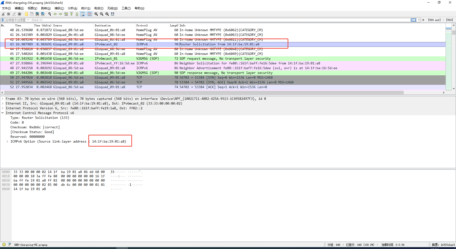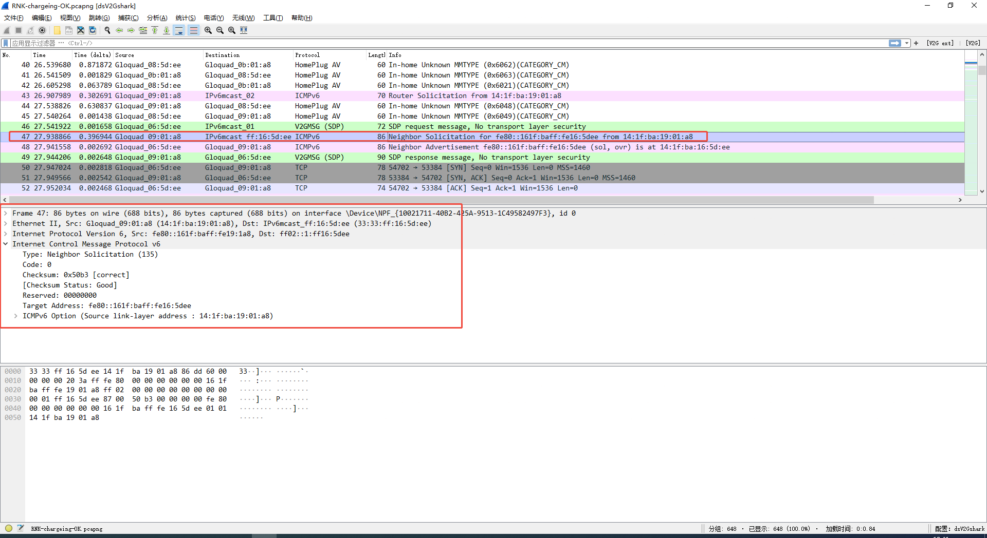 5、SECC收到SDP请求后,已经知道对方的IPv6地址,此时SECC发起 NS,请求查询EVCC的MAC地址,MAC地址用在以太网帧,这一步是必须的