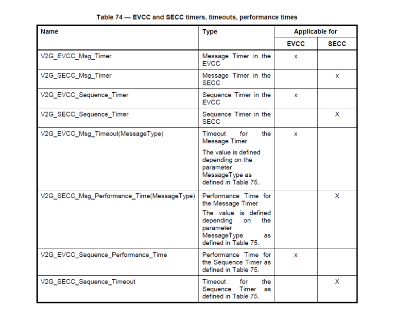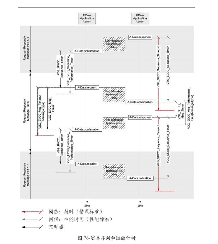 SECC、EVCC都有一个 Msg_Timer、一个 Sequence_Timer,以及相应的性能时间、超时时间。性能时间我的理解就是你响应得多快、执行得多快,就是性能时间了;超时时间没啥好说的,就等待超时呗。