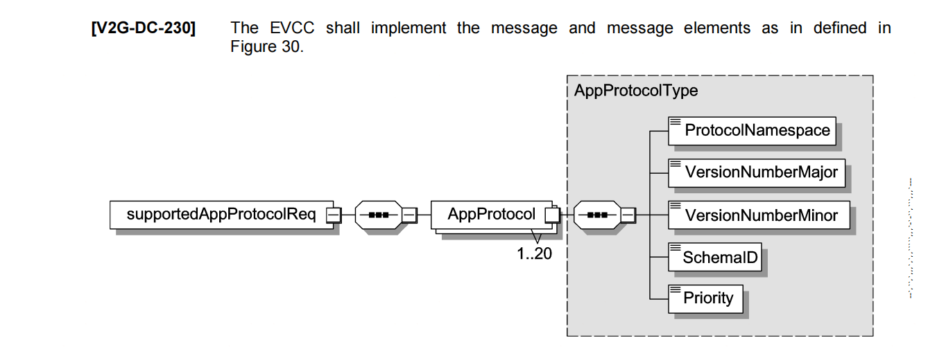 EVCC 发起 supportedAppProtocolReq,请求协议支持,询问SECC要选哪种协议。其V2G Message 结构如下: