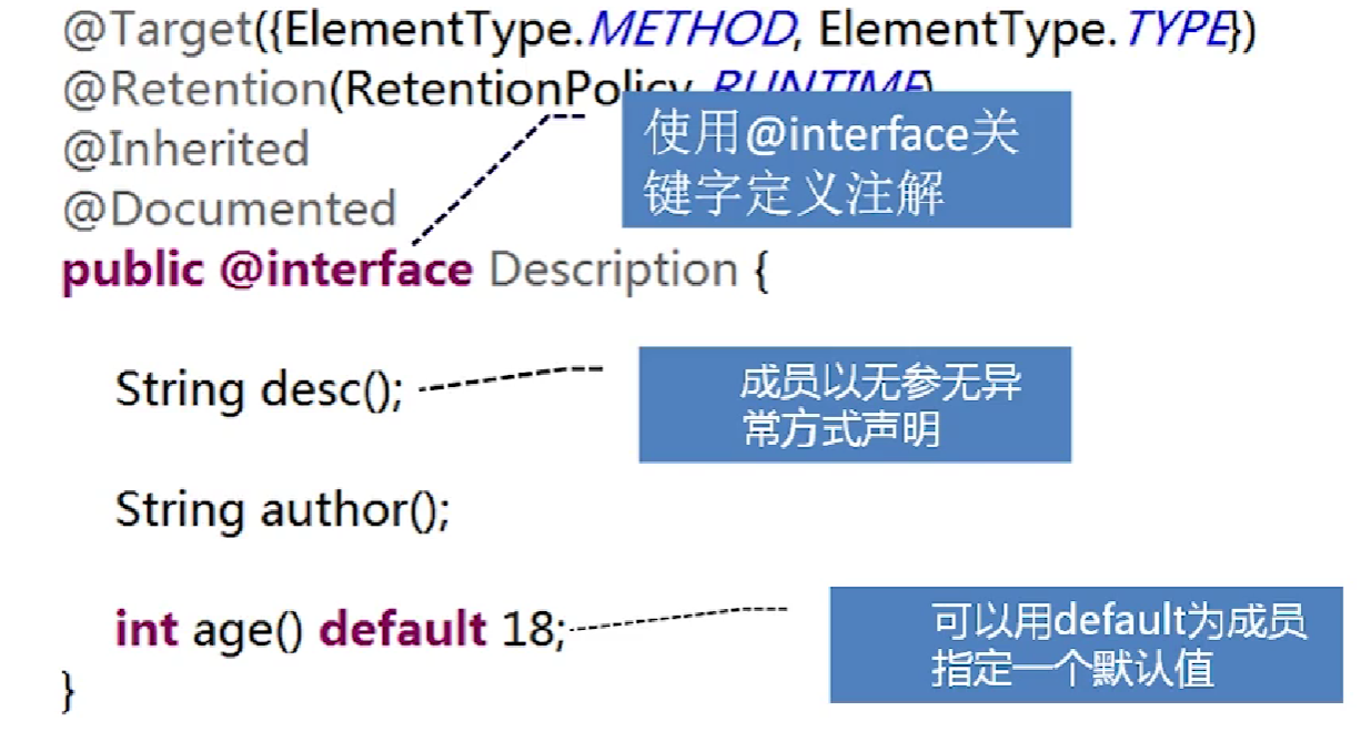 f.注解类可以没有成员,没有成员的注解称为标识注解(例如@Overrride)