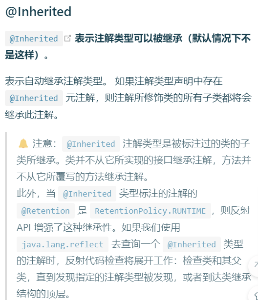 - @Inherited 这是一个标识型元注解,即允许继承(默认情况下不是这样)