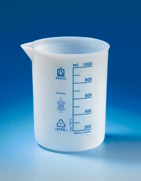 Brand® 烧杯由聚丙烯、ETFE 或 PFA 制成,带刻度,有带倾倒口和/或带刻度的手柄多种选择。