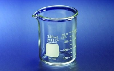 Pyrex® 烧杯兼顾了抗热震性能和机械强度,带有刻度,由 1 类 A 级低膨胀硼硅玻璃制成。