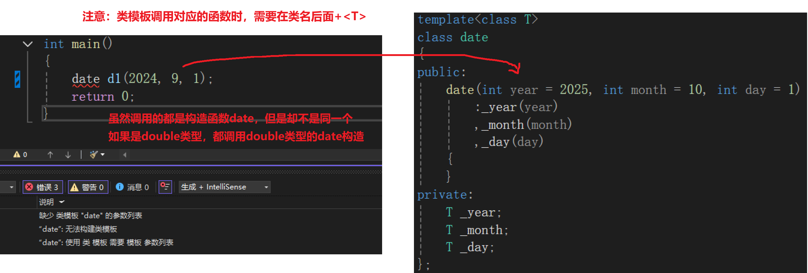 (2)类模板实例化,由语法规定:类名+<T>才是类型。